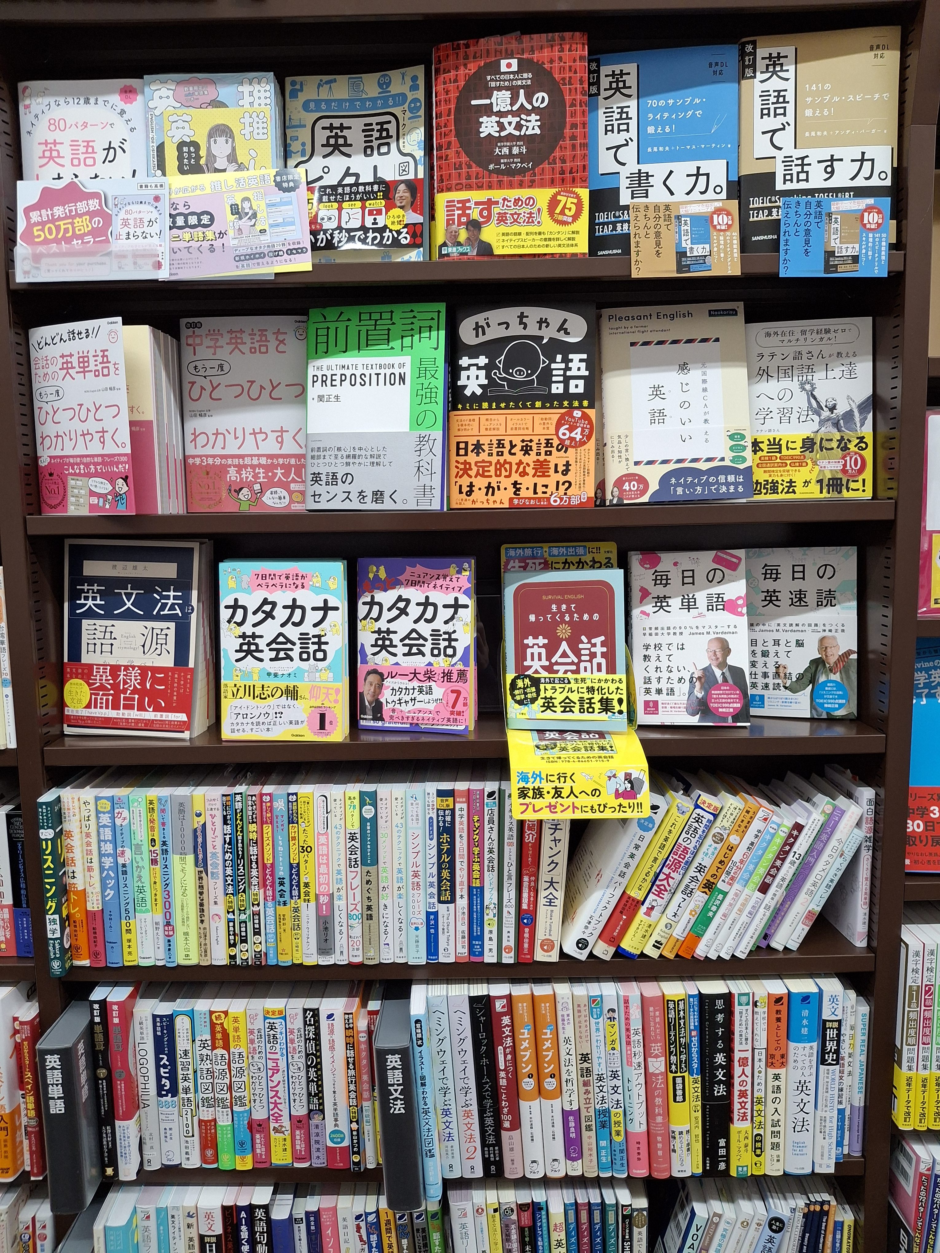 本屋さんへ。英語の教科書や漫画があったり。