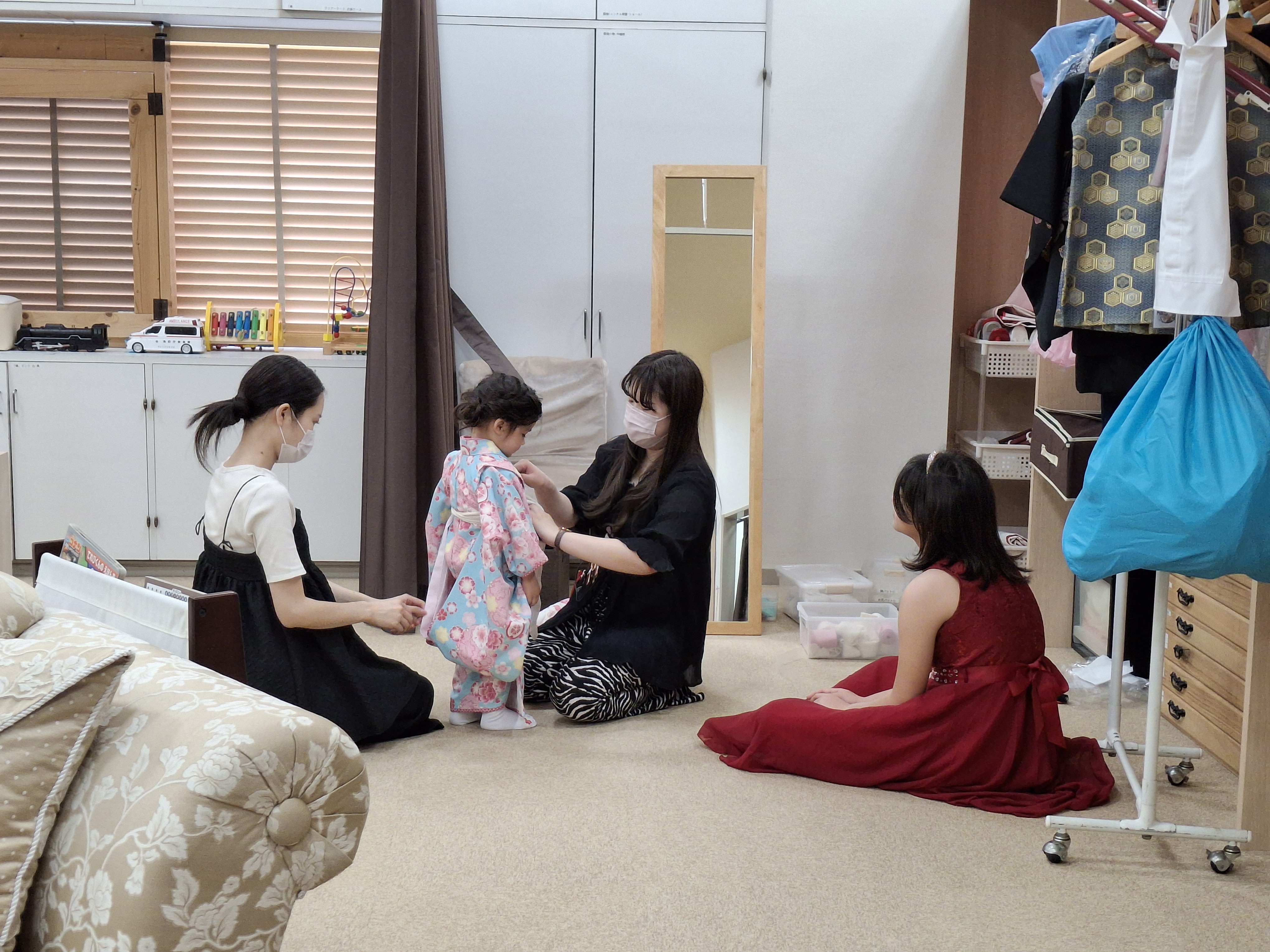 I went to a hair salon in the morning and took family photos in the afternoon. Now my hair color is pink.